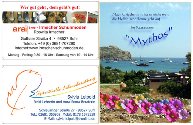 / R&S Unternehmergesellschaft / Gasthaus und Pension zur Eisenbahn / Irmscher Schuhmoden / Mieterverein Suhl und Umgebung e.V. / und viele mehr....................